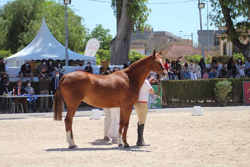Precisamente esta última yegua que mencionamos, “Orgullosa” también estuvo presente en JEREZ, concretamente en la Sección Hembras de 6 años en adelante. Al final se hizo con la medalla de bronce a escasa distancia del primer y segundo puesto.